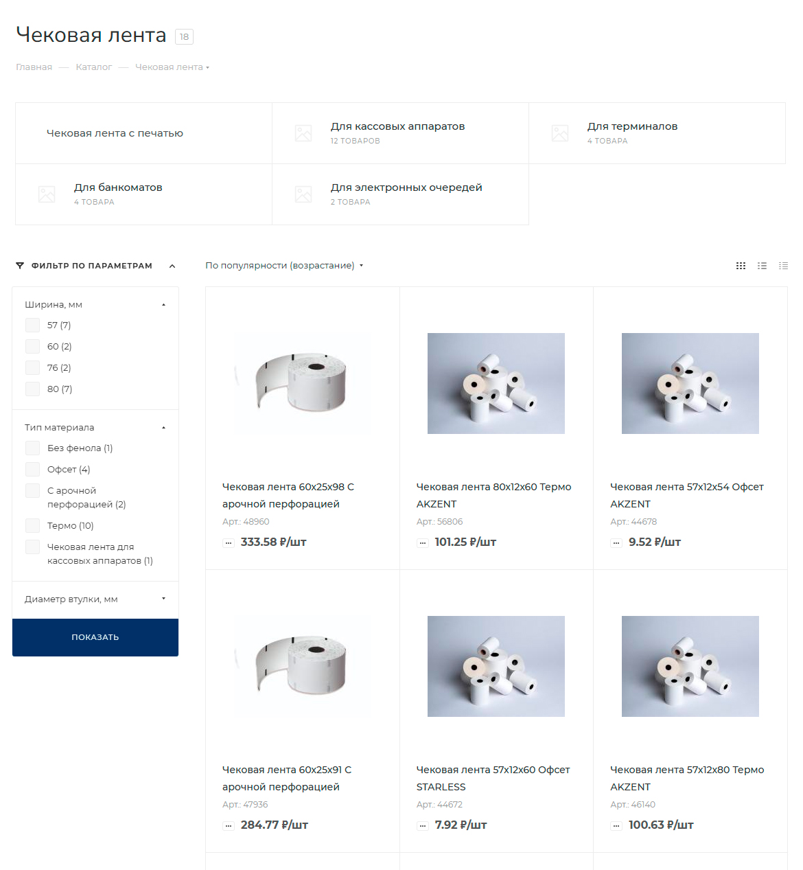 - Есть структурированный вывод категорий товаров