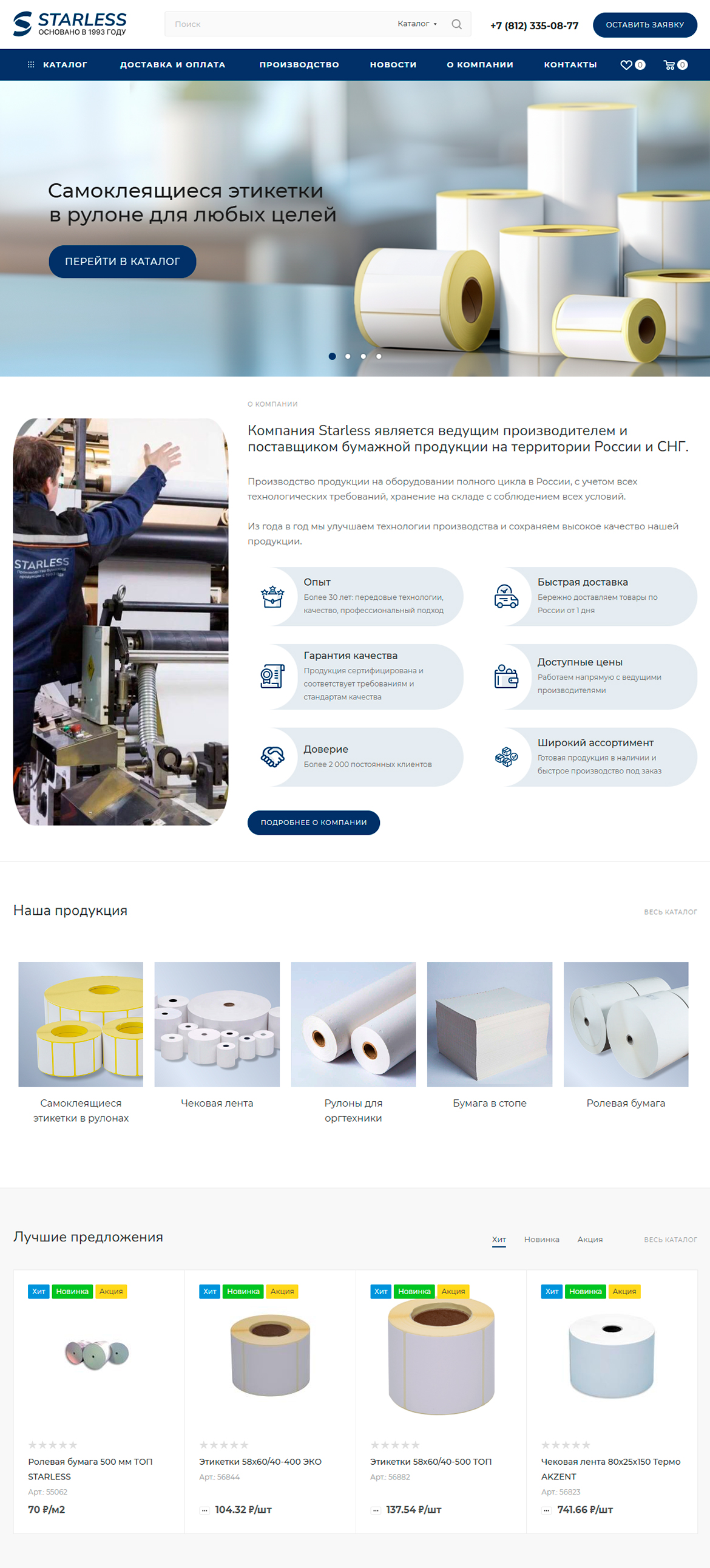 Компания ООО «Старлесс Трейд» основана в 1993 году и начинала свой путь с продажи бумажных рулонов с перфорацией, далее расширила ассортимент до чековой ленты и рулонов для оргтехники. Сейчас компания STARLESS — крупнейший производитель самоклеящихся этикеток и чековой ленты в России.