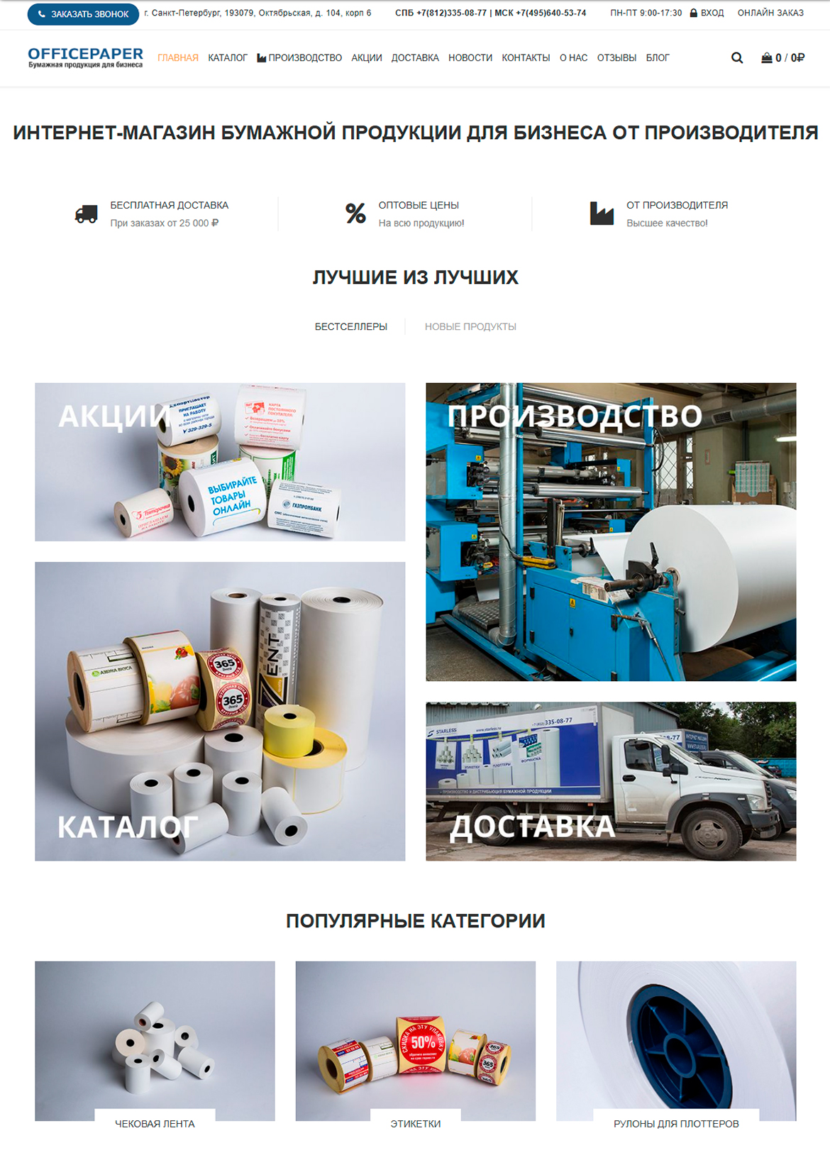 На странице продукции реализровали доработку по требованию заказчика: в зависимости от количества выбранной продукции, меняется стоимость товара за 1 шт. Есть возможность заказа товара в 1 клик.