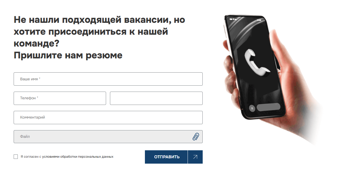 Разработали интерективную веб-форму с возможностью прикрепления файла и отправки контактных данных. Весь контент сохраняется в системе администрирования, а также отправляется в CRM-систему Битрикс 24.