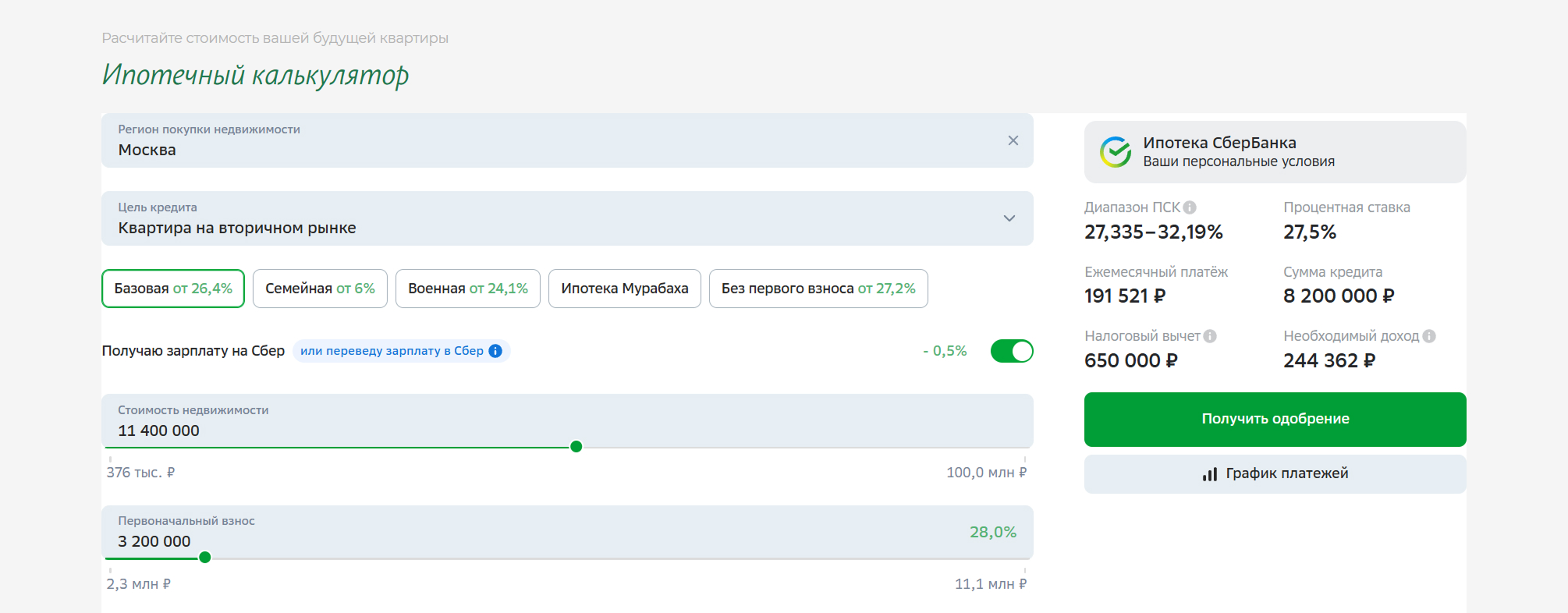 На сайт интегрирован калькулятор ипотеки. Пользователи могут быстро рассчитать условия, узнать ежемесячный платеж, сумму кредита и необходимый доход. Есть возможность заполнить контактную информацию для получения индивидуального предложения и воспользоваться дополнительными услугами.