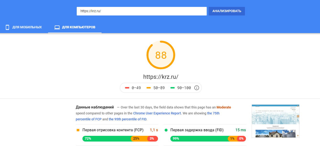 Увеличили скорость загрузки сайта до максимально возможных показателей для ПК и мобильных устройств. Проверка осуществлялась через инструмент Google Pagespeed